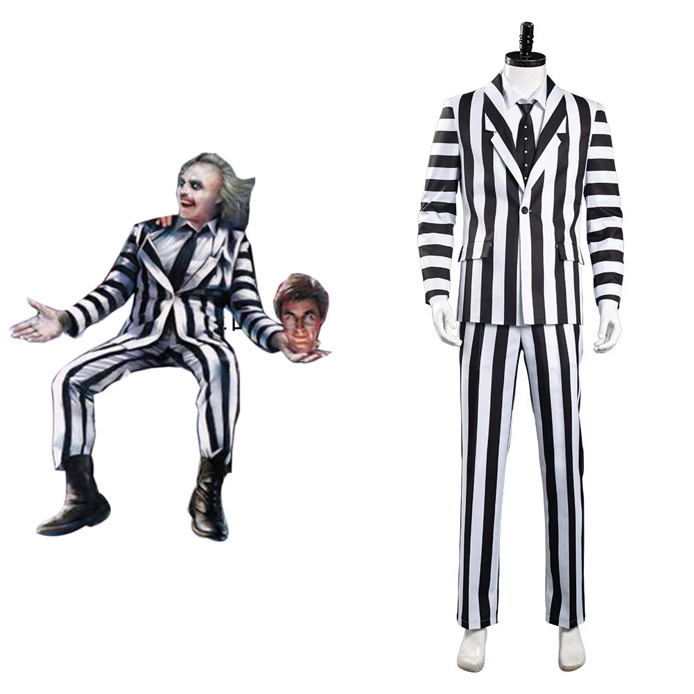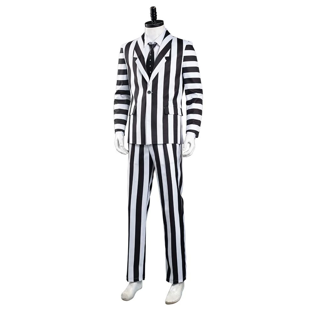 Beetlejuice Adam Rayures Noires et Blanches Halloween Carnaval Cosplay Costume